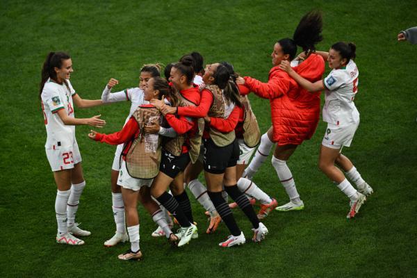 7月30日,摩洛哥队球员赛后庆祝。新华社记者毛思倩摄