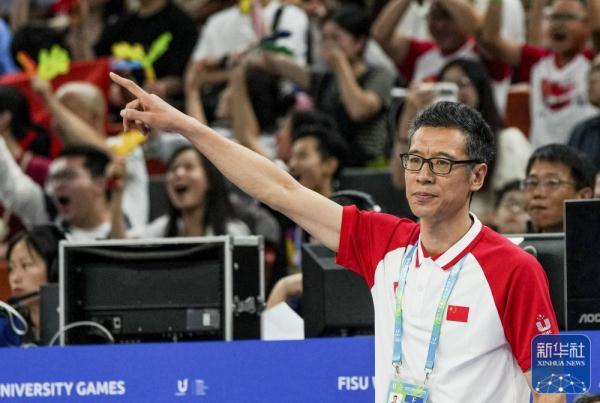 ↑中国队主教练李笋南在场边指挥。新华社记者 胡超 摄