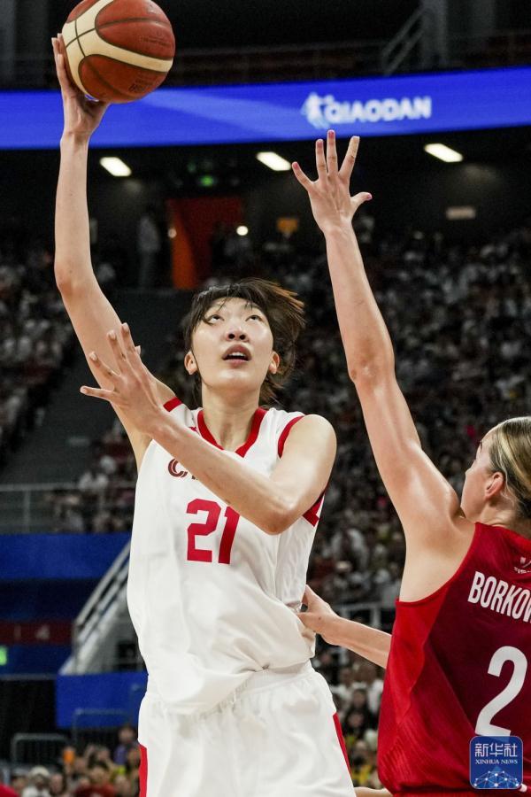 ↑中国队球员唐子婷(右)在比赛中投篮。新华社记者 胡超 摄