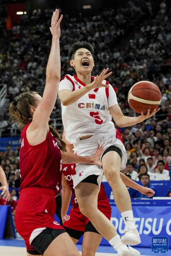 ↑中国队球员李双菲(右)在比赛中上篮。新华社记者 胡超 摄