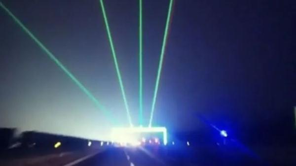 在高速公路上的防疲劳镭射灯,通过间断性频闪防疲劳激光预警灯、警报声、高音喊话等,给驾驶员视觉、听觉多感官的变化刺激,改变单一的行车环境,来引起驾驶员的警觉,达到防治疲劳和预警效果。