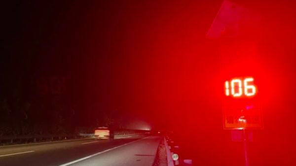 在环岛高速公路部分路段,交警蜀黍投放安装了车速预警屏 。