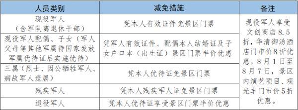 注:优待项目实行动态管理,上述景区、文物单位门票均指景区首道门票,优待措施有效期4年,从2022年8月1日起算。期满后,无特殊情况继续顺延,如有变更,第一时间向社会公布。(具体政策请咨询景区,以景区调整为准)