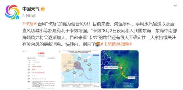 据中国天气微博消息,海温条件、季风水汽输送以及垂直风切减小等都是有利于“卡努”增强。“卡努”8月2日夜间移入我国东海,东海中南部海域风力将会逐渐加大,目前来看,“卡努”的路径还有很大的不确定性。