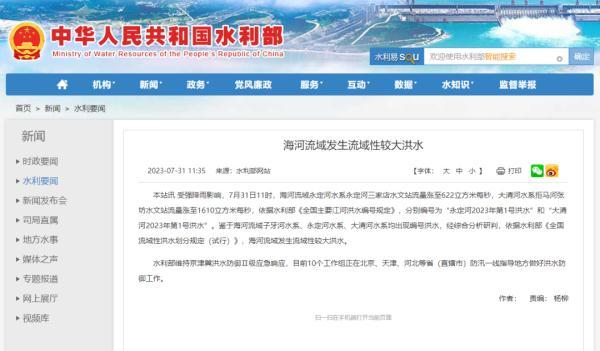 据水利部网站消息海河流域发生流域性较大洪水