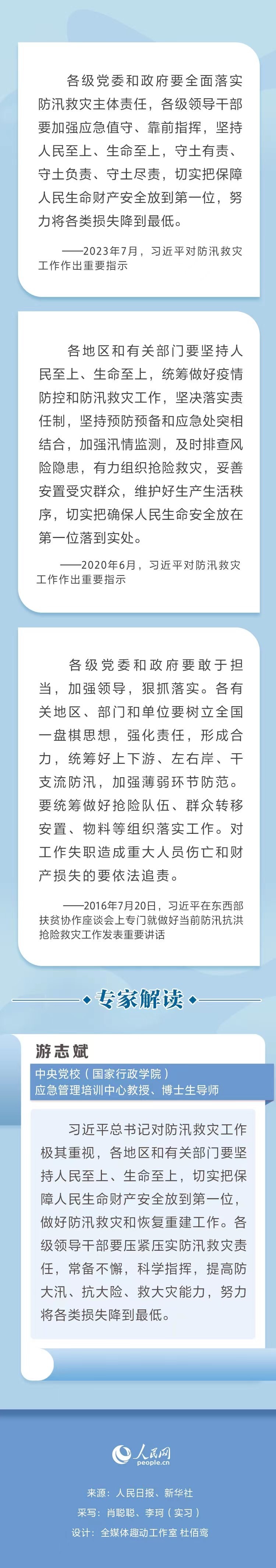 人民利益高于一切,防汛责任重于泰山。党的十八大以来,以习近平同志为核心的党中央高度重视防汛救灾工作。人民网带您重温习近平总书记讲话要点并邀请专家解读。