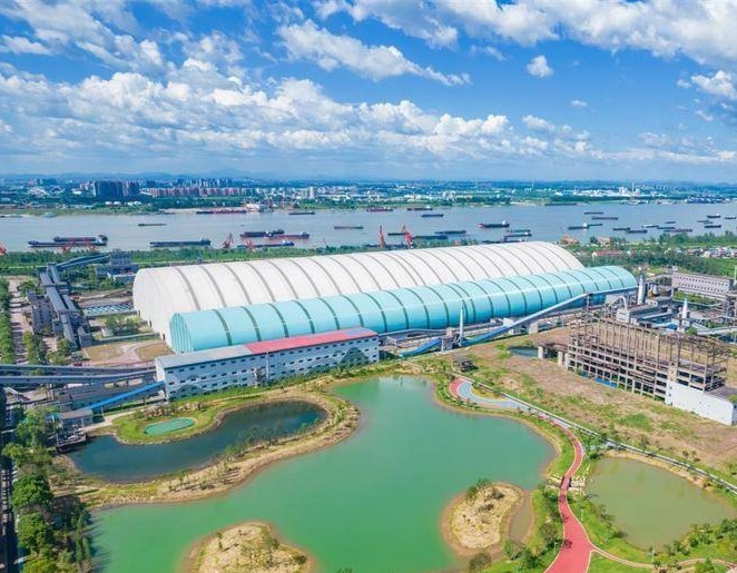 7月29日,武钢资源集团鄂州球团有限公司,航拍建成投用的料场封闭及人工湖治理项目。近年来,该公司累计投入6.4亿元,实施雨污分流、料场封闭、烟气超低排、人工湖水体治理等重点环保升级改造项目。经过治理后,整个厂区旧貌换新颜,加速向绿色智慧工厂迈进。(湖北日报全媒记者 薛婷 通讯员 陈静 摄)