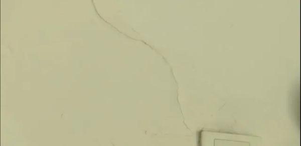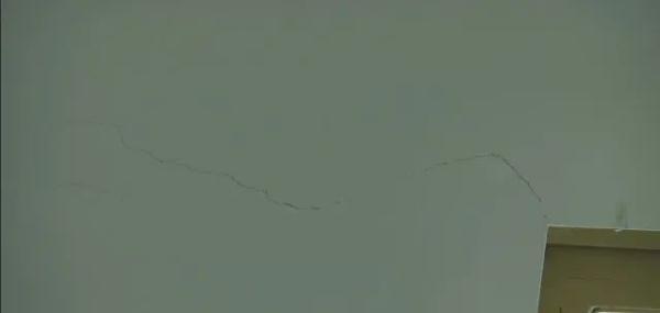 居民杨先生:自从泳池蓄水以后,这种问题就暴露出来,每个楼道都有(裂缝)。几十条的垂直裂缝,从20楼一直到13楼、14楼。