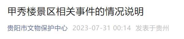 7月31日凌晨,据“贵阳市文物保护中心”微信公众号消息,贵阳市甲秀楼景区管理处发布情况说明称,已对涉事工作人员进行了批评教育。具体如下: