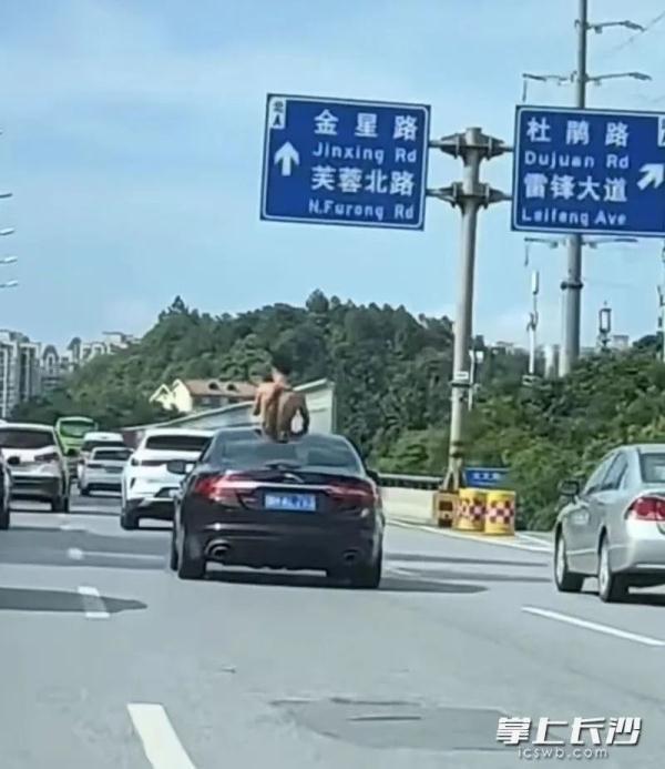 7月24日,长沙交警接网友举报,在岳麓区西二环发现一男子车辆行驶过程中站立在车内,半个身子探出天窗,在烈日高温下疑似在做“日光浴”,十分危险。