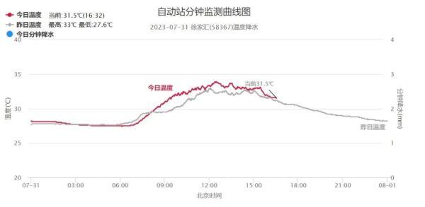 上海今天蓝天白云,又出现了美丽的水晶天。东南风作用下,最高气温呈现南低北高的态势分布,其中市区徐家汇站最高33.9℃。