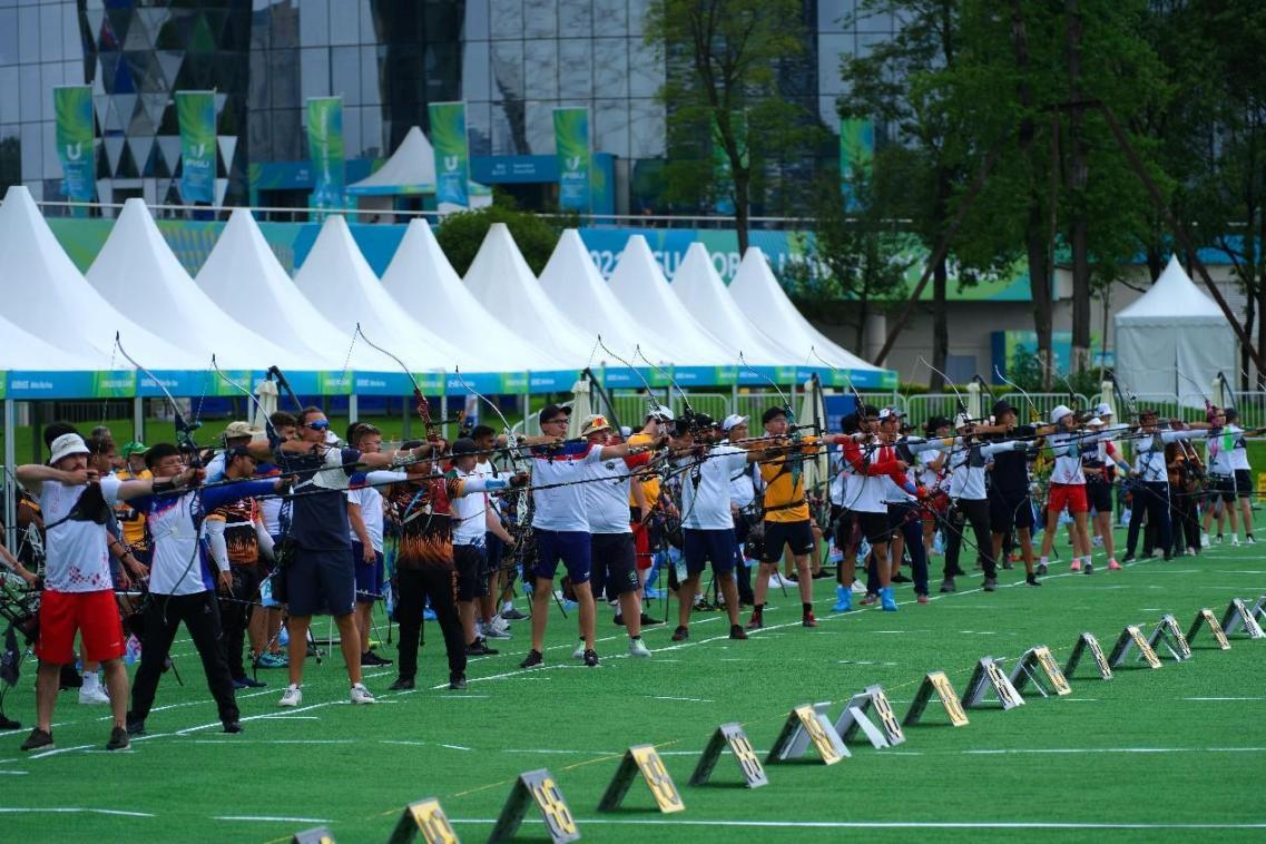 The 31st FISU World University Games in Chengdu sees its first competitive action, an archery competition, July 27, 2023. (People's Daily Online/Guo Junfeng)