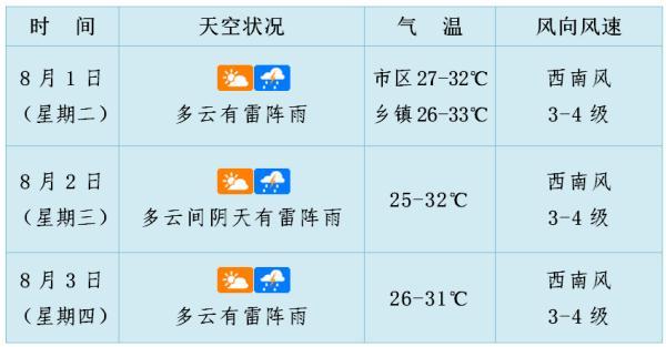 海洋方面:8月1日~5日,中沙和南沙群岛附近海面风力6级、阵风7~8级;北部湾海面,海南岛四周海面,西沙群岛附近海面风力5~6级、雷雨时阵风7~8级。
