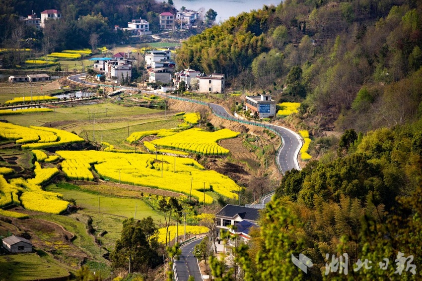 继续往前行驶,从G220国道里店渡槽路段进入里天红色旅游公路,沿路层峦叠翠、郁郁葱葱,行至泰春山顶,便到了全国第三批红色美丽村庄孟家冲村……