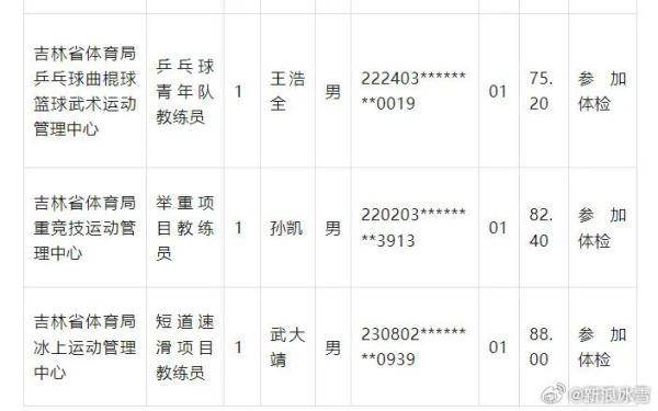 可以称呼大靖“武指导”了!根据吉林省体育局公告显示,中国短道速滑奥运冠军武大靖参加直属事业单位公开招聘面试,拿到了88分。这意味着,公示之后,武大靖将成为吉林省体育局冰上运动管理中心短道速滑项目的教练员。不出意外的话,他将以新的身份出现在赛场上。