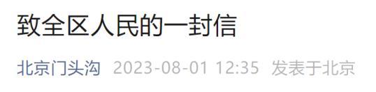 8月1日,北京门头沟发布“致全区人民的一封信”。