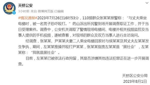 2023年7月26日16时53分,110接群众张某某报警称:“与丈夫乘坐电梯时,被一名男子恐吓殴打。”药山派出所民警到场开展调查取证工作,并于当日受理案件。调查中,公安机关调取了警情现场电梯间、电梯外相关视频监控及当事人提供的手机视频,逐帧查看,对现场的群众及双方当事人进行走访询问。