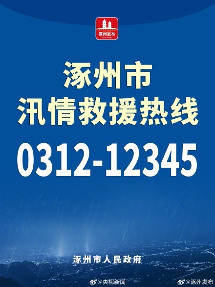 涿州市公布汛情救援热线:0312-12345 @涿州发布