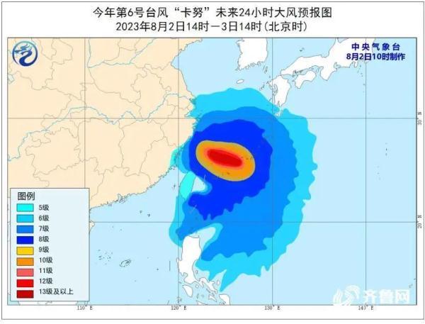 今年第6号台风“卡努”今天(2日)上午8点位于浙江省玉环市东偏南方向约610公里的东海海面上。山东省气象台首席预报员表示,“卡努”的移动路径将发生转向,对山东影响较小。