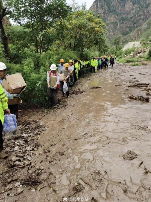 在乘客往山外撤离的过程中,门头沟区成立了临时指挥部,统筹协调各项救援工作。同时,安排了应急、消防、医疗等救援保障力量,设置保障点为群众准备了饮用水、食品、药品等物资,确保撤离群众的安全和生活需求得到满足。