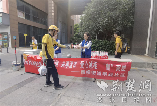荆楚网(湖北日报网)讯(记者 林琳 通讯员 梁星、肖洋 实习生 丁可)“天儿这么热,这里能领免费冷饮,让我非常地感动。”环卫工人蒋师傅手捧雪糕乐呵呵地说道。8月1日下午,江岸区四唯街道麟趾社区新时代文明实践站和辖区爱心企业联合开展了“共同缔造 共享清凉 爱心冰柜 ‘麟’聚爱”活动,为户外工作者免费提供冰镇矿泉水、冰棒等冷饮物资,给他们送上一剂缓解酷热的“良药”。