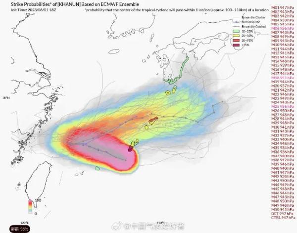 不过就“卡努”目前形势分析而言,登陆可能性正在下降,转向可能性增大。最大可能于3日夜里至4日上午在浙江南部近海转向东北方向移动。主要是由于3日夜间至4日白天,北侧副热带高压减弱断裂,导致台风移速减缓甚至停滞,后期台风受到断裂的南侧副热带高压和西南季风引导,逐渐转向东北方向移动。
