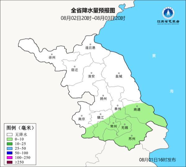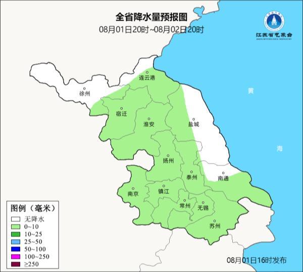 全省多云,其中江苏东南部地区有分散性阵雨或雷雨。最高温度:全省32~33℃;最低温度:江苏东南部地区26~27℃,其他地区25℃左右。全省偏东风4-5级。