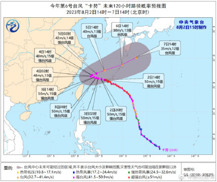 第6号台风卡努今日16时在北纬26.1度、东经125.9度,距离玉环市东偏南方向约510公里,中心最大风力15级,中心气压为940百帕,移动方向西偏北,移动速度每小时10公里。根据台风态势及走向,浙江海事局于今日14:30启动浙江南部水域Ⅱ级防台应急响应。@浙江海事
