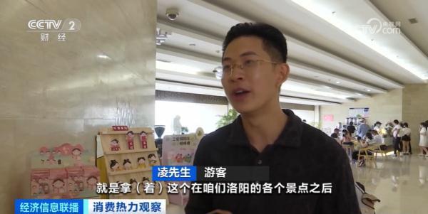 游客 凌先生:买的“通关文牒”,拿着这个,到洛阳的各个景点会盖一个章,就像玩游戏通关打卡一样,确实很有意思。创作团队能把这些高流量的、很有意思的文化IP融入文创产品里,很能打动我。