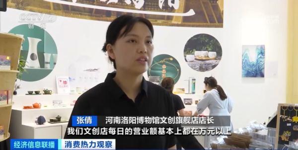 河南洛阳博物馆文创旗舰店店长 张倩:进入暑期以来,文创店每日的营业额基本上都在万元以上。