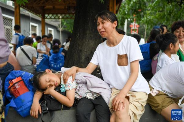 8月2日,K396次列车旅客在北京市门头沟区妙峰山镇政府附近休息,等候转运。