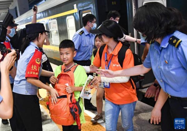 8月2日,K396次列车旅客通过铁路转运抵达北京丰台站。