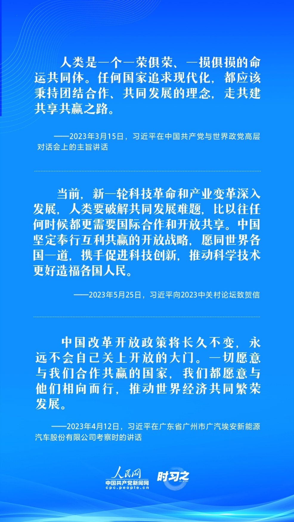 4月12日,习近平在广汽埃安新能源汽车股份有限公司考察时指出,中国改革开放政策将长久不变,永远不会自己关上开放的大门。一切愿意与我们合作共赢的国家,我们都愿意与他们相向而行,推动世界经济共同繁荣发展。