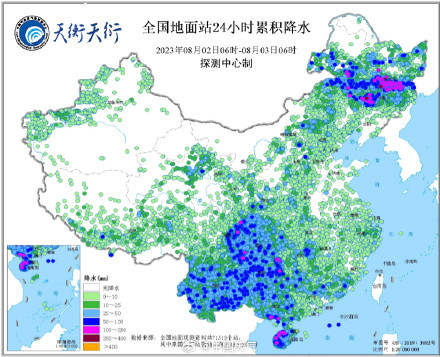 中国气象局气象探测中心综合气象观测产品系统(天衡天衍)显示,02日06时至03日06时,内蒙古东部、吉林、黑龙江、西南、海南等地有大范围强降水,24小时最大累积降水量272.2毫米,发生在吉林榆树长发。吉林黑龙江将成强降雨中心今天00时至06时,东北地区雷达回波逐渐向东移动,目前回波仍在影响吉林北部、黑龙江南部等地。预计今天内蒙古东北部、黑龙江东南部、吉林北部等地局地有大暴雨,继续做好防范。