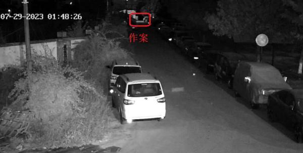 经进一步侦查,办案民警发现一男子有作案嫌疑。案发当天凌晨1时许,有3名男子走进案发路段,其中1名男子走在后面,环顾四周发现无异常后,随手从裤兜里拿出了一个尖锐的工具,微微弯曲膝盖触碰轮胎侧边,每经过一辆就触碰一辆,然后那些车就明显“蹲”了下去。