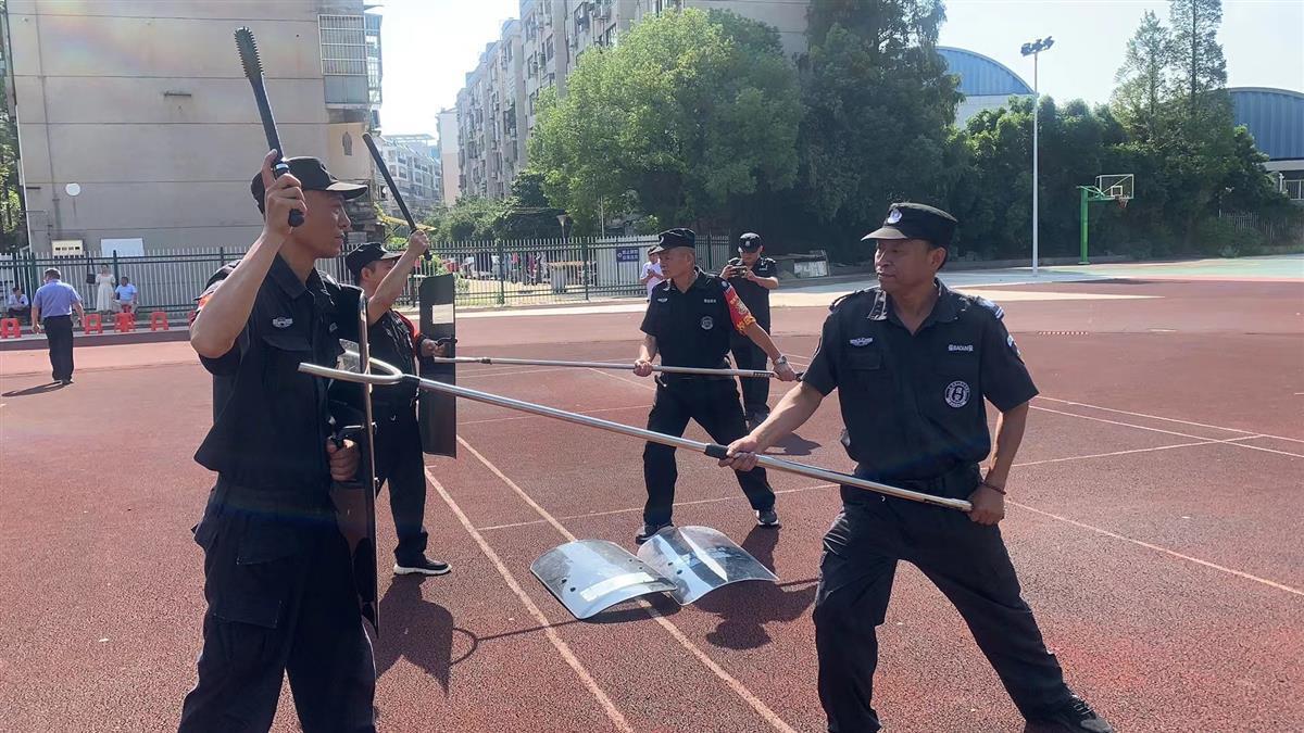 在培训中,教官从实战需要着手,围绕安防器械的使用方法对保安员进行技能培训,并坚持理论与实践相结合的培训方法,现场演示介绍了防暴盾牌、钢叉、警棍等警用“八件套”的使用方法、操作要领及注意事项。