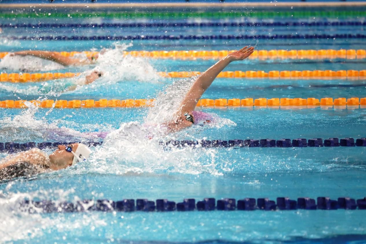 成都大运会女子200米仰泳决赛结束,柳雅欣率先抵达终点。光明网记者董腾飞/摄