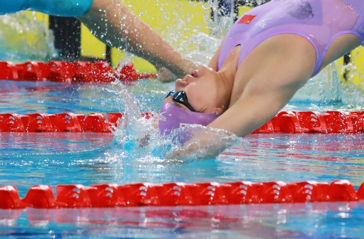 成都大运会女子200米仰泳决赛中,柳雅欣入水瞬间。光明网记者董腾飞/摄