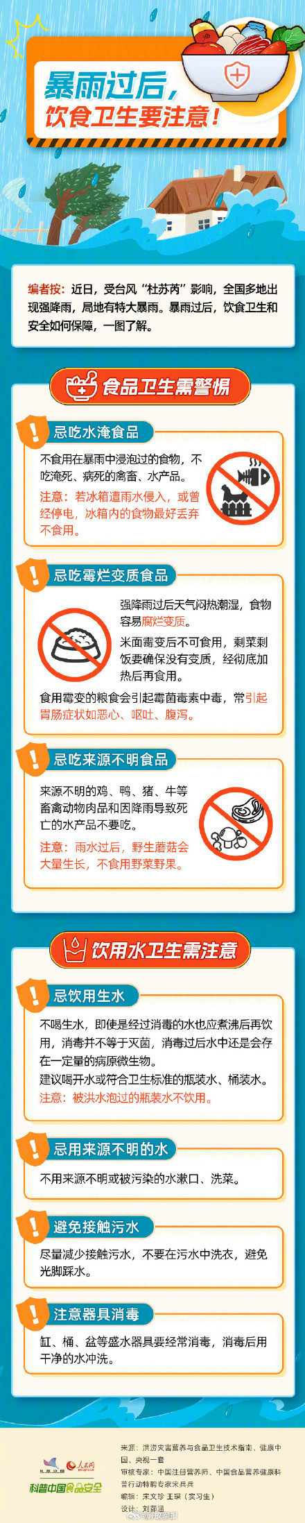 近日,多地持续遭遇强降雨袭击。强降雨过后,伴随的高温高湿天气,极易发生肠道传染病和各类食源性疾病,日常生活中要注意食品安全,一图了解。
