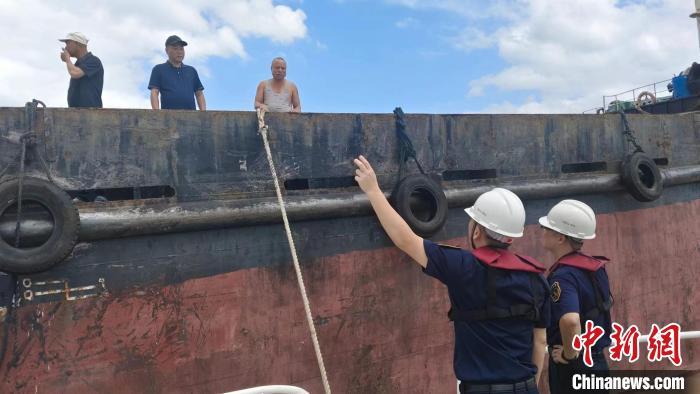 海事部门工作人员提醒点验船舶 温州海事局 供图