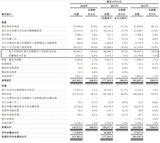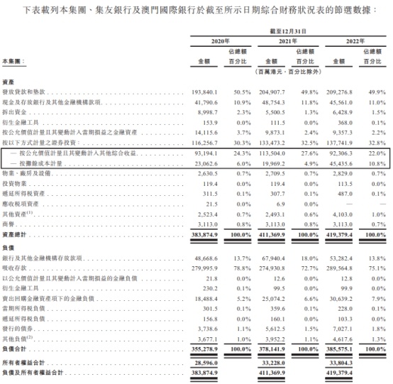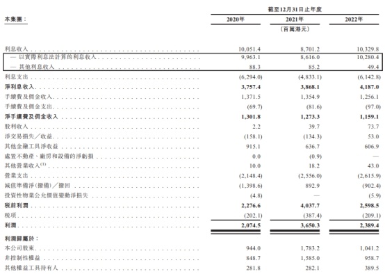 2022年末发放贷款和垫款2093亿港元 吸收存款2896亿港元