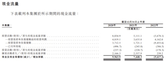 2020年、2021年、2022年,厦门国际投资的经营活动产生的现金流量净额分别为80.35亿港元、51.11亿港元、-56.78亿港元。