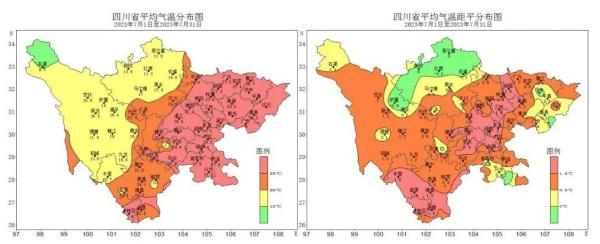 7月四川省平均气温及距平分布图