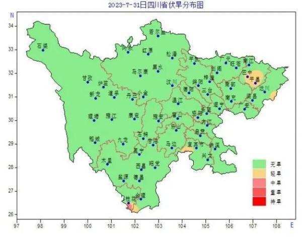 2023年7月31日四川省伏旱分布图