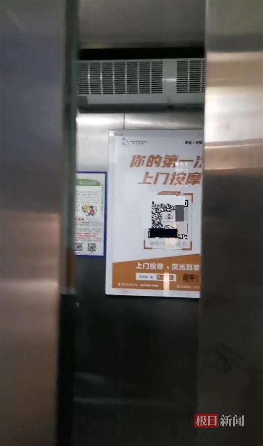 此前,极目新闻记者到龙江庭苑小区A区现场查看,发现电梯里确实有大幅上门按摩广告。小区居民有不少人认为此类广告进入小区不合适,不过也有居民称只要服务内容不违法违规可以接受。