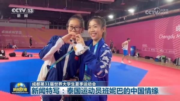 央视网消息(新闻联播):成都大运会,不仅仅是年轻运动员们展现实力互相切磋的赛场,也是青春汇聚交流交友的舞台。来自泰国的跆拳道运动员班妮巴就在成都大运会的比赛期间收获了友谊。