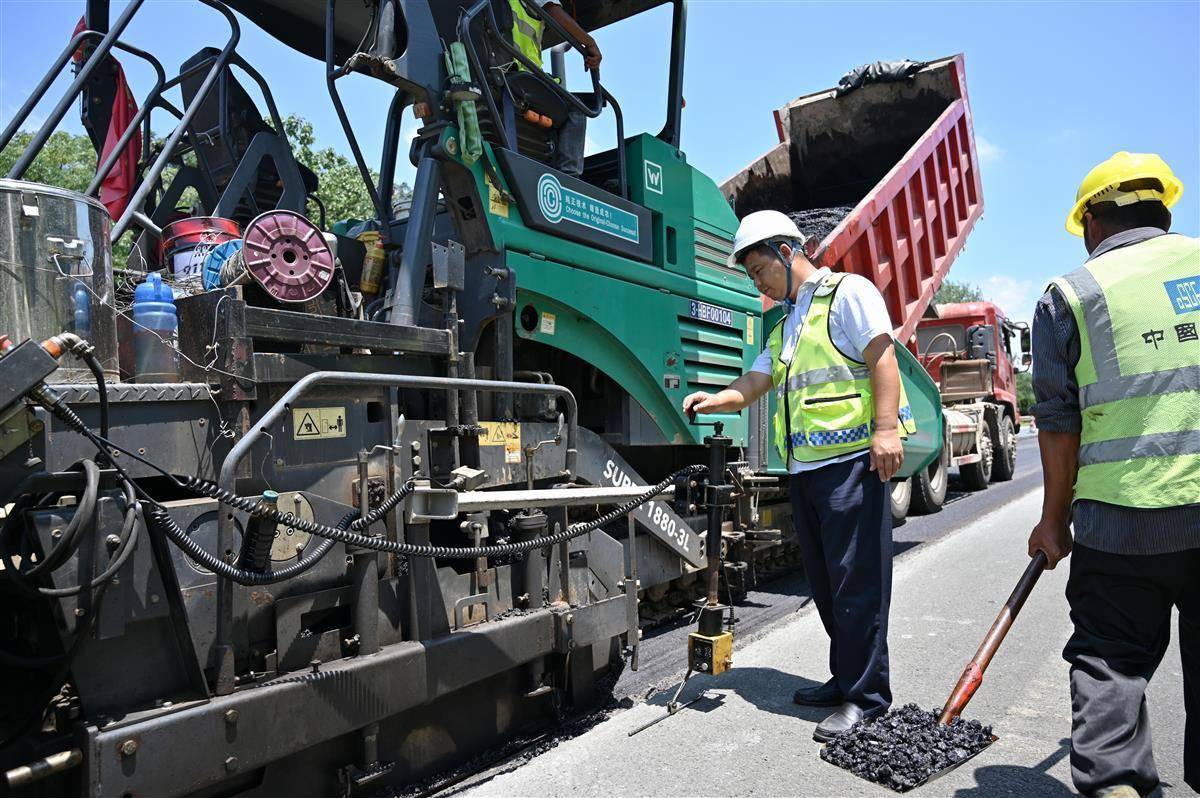 8月3日,走进京港澳高速沥青摊铺现场,一阵热浪袭来,没有一丝阴凉,火辣的太阳混合着路面40多℃高温,摊铺机将沥青混合料缓缓铺在基层上,压路机在后方来回碾压,一段沥青路面“修补”完成。