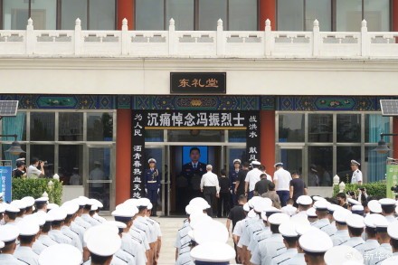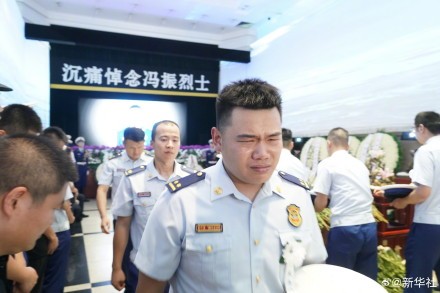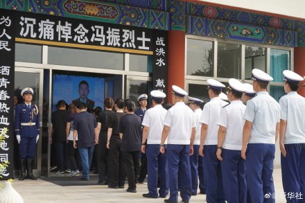 8月4日上午,在强降雨抢险救灾中壮烈牺牲的冯振烈士遗体告别仪式在北京八宝山殡仪馆举行。致敬英雄,泪别烈士,一路走好!送别冯振烈士(记者:任超吴文诩)