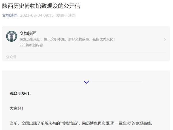 陕西历史博物馆致观众的公开信全文↓↓