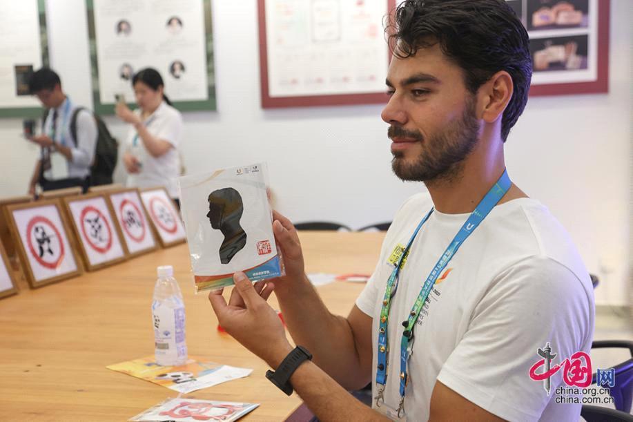荷兰运动员Wessel Hesselink收获了一枚自己侧脸轮廓的剪纸作品。中国网记者 伦晓璇 摄